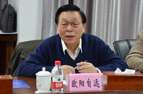12月15日上午,中科院院士、著名的天体化学与地球化学家,中国月球探测工程首席科学家、被誉为“嫦娥之父”的欧阳自远院士和中科院地球化学研究所研究员、探月工程地面应用系统总工程师刘建忠等一行3人来beat365雁山校区交流指导。