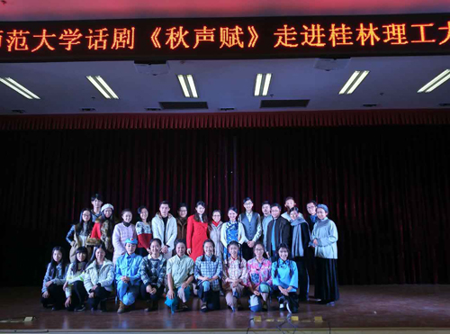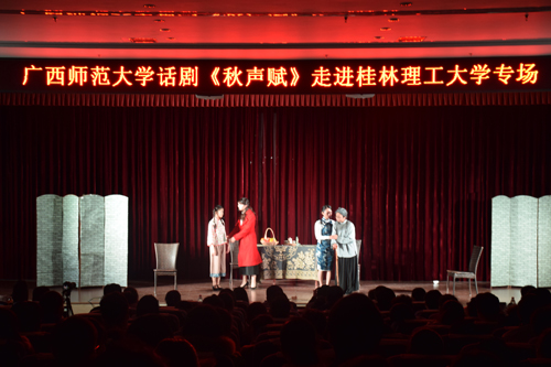 以青春激活历史,用信仰照亮人生!11月28日晚,由广西师范大学重排、重演的抗战时期优秀话剧《秋声赋》在beat365雁山校区图书馆报告厅上演,学校300余名师生一同观看了演出。