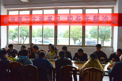 同学们踊跃发言,表示在校学习期间见证了学校各项事业所取得的可喜成绩和巨大变化,他们为此感到无比光荣和自豪。随后,同学们畅谈了近期的学习、生活情况,表达了对学校未来发展的关注和期待,并分别就教室环境、图书资源、校园网络等硬件设施建设问题,宿舍环境、就餐环境、开水供应等生活条件改善问题,学风考风、英语培训、课程设置等教学质量保障问题等方面提出了有针对性的意见和建议。每位学生代表的发言都充分体现了桂工学子勤于学习、善于思考、勇于实践的良好精神风貌。