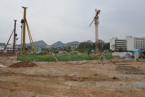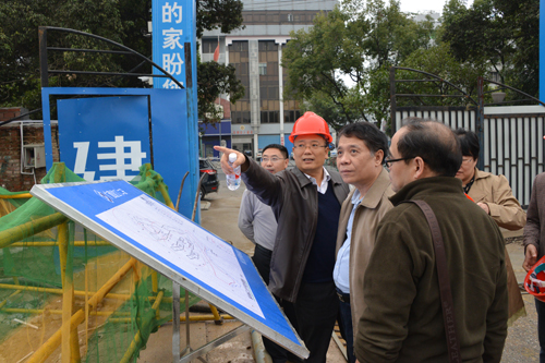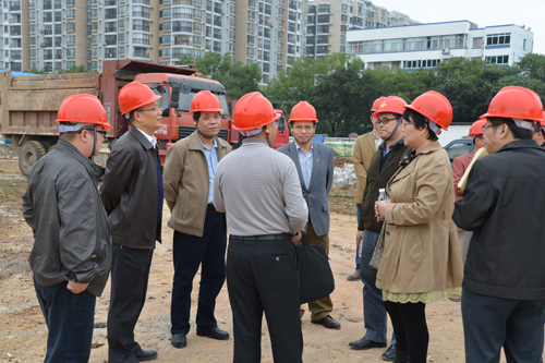 杨林组长一行首先在周国清副校长、王敦球副校长等的陪同下到留学生公寓项目建设现场进行了实地查看,详细了解整体规划、施工进度、质量安全等情况。