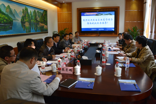 11月24日下午,自治区教育厅以国际合作与交流处处长杨林为组长的检查组一行四人来beat365检查指导屏风校区留学生公寓建设项目。