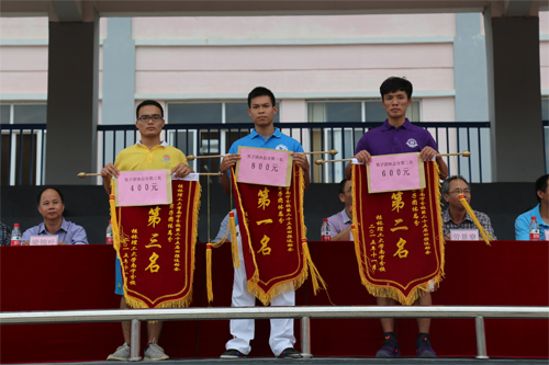 男子团体总分前三名系部代表上台领奖