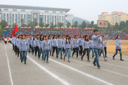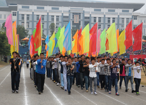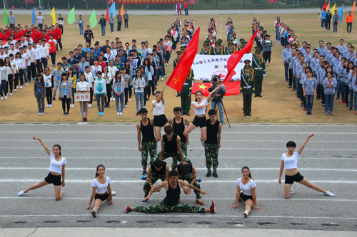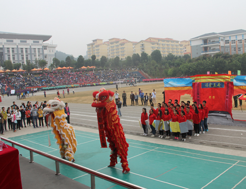 上午8点30分,分校运动场人声鼎沸,锣鼓喧天,彩旗飘扬,人头攒动。在国旗队的引领下,鲜花队、彩旗队、教工队、裁判队、各系运动员代表队依次入场。各系迈着整齐划一的步伐,喊着铿锵有力的口号,先后通过主席台,并进行形式多样的风采展示。精彩的舞狮、啦啦操、捕俘拳等表演一次又一次将现场推向高潮。空港学子用他们独特的创意、欢快的舞姿,展示桂工的蓬勃朝气。他们个个昂首阔步、精神抖擞,洋溢着青春的活力和激情。