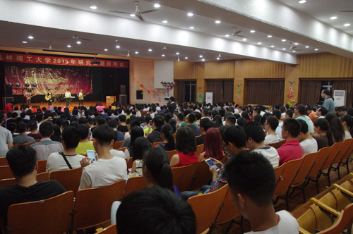 10月16日晚19:30,2015年研究生迎新生文艺晚会在南校区礼堂举行,晚会现场欢歌笑语、气氛热烈。学校副校长陈学军、周国清到会,党委研究生工作部、研究生院、党委宣传部、校团委以及各二级学院主管研究生教育领导、研究生教学秘书、研究生辅导员与广大研究生一起观看了晚会。