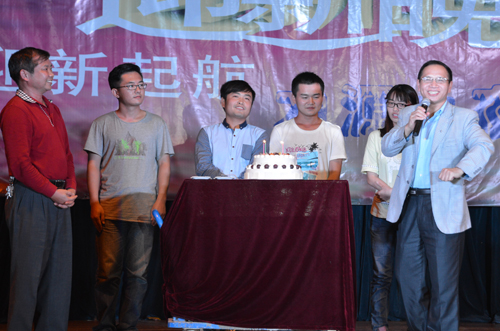 晚会现场,陈学军副校长、周国清副校长还为当天过生日的4名研究生新生切开生日蛋糕,送上了生日祝福。