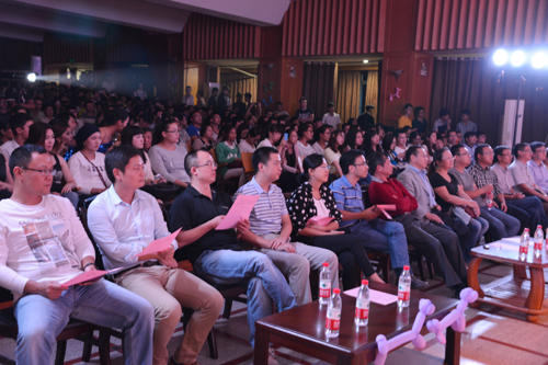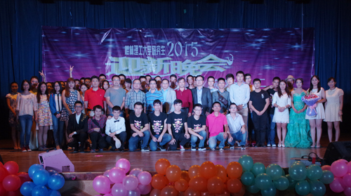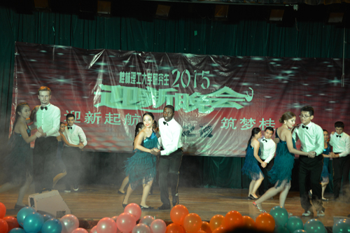 晚会还邀请了东华理工大学研究生院党委副书记许亚男作为嘉宾登台献艺。许亚男副书记先后表演了模仿秀,演唱了《美了美了》,并在现场观众的热情邀请下又加唱了《小苹果》等歌曲,他激情澎湃的演唱、诙谐幽默的语言、热情似火的舞蹈赢得了在场观众一次又一次的掌声,喝彩声响彻全场,将晚会推向了高潮。