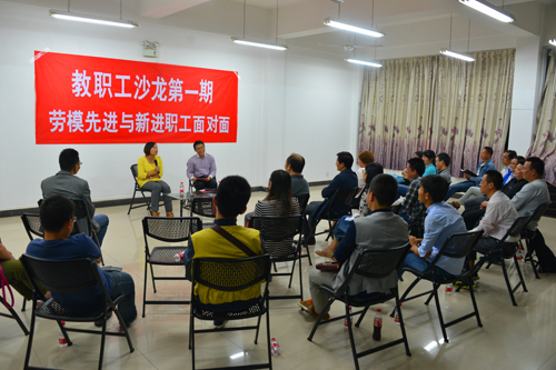 为进一步贯彻落实学校第二次党代会精神,为新进教职工搭建一个沟通交流平台,促进新进教职工全面成长,10月13日晚,学校在屏风校区工会会议室举行了主题为“劳模先进与新进教职工面对面”的第一期职工之家沙龙。学校党委副书记、工会主席王赣华出席沙龙活动。学校工会负责人以及来自各二级单位的新进教职工代表近20人参加了本期沙龙。沙龙活动由学校工会常务副主席辛立章主持。