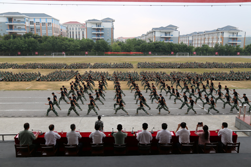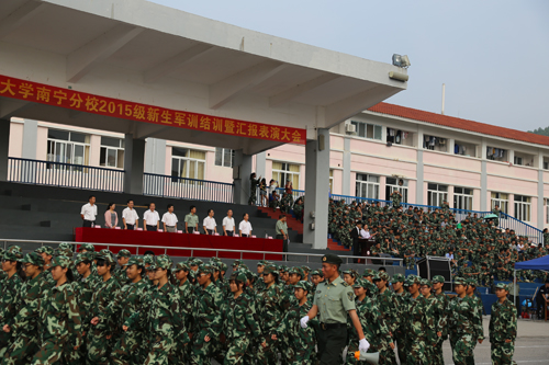 在嘹亮的《中国人民解放军进行曲》中,南宁分校2015级新生军训结训暨汇报表演大会圆满落幕。