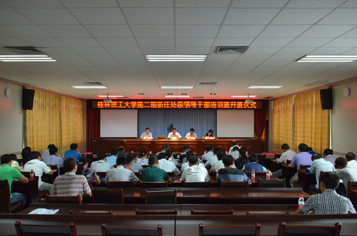 张学洪书记在开班仪式上讲话指出,此次对新任领导干部开展集中培训很有必要,新任领导干部一要充分认识加强培训的重要性。当前教育综合改革正开展得如火如荼,学校第二次党代会提出了基本建成特色鲜明的高水平教学研究型理工大学的奋斗目标,在全体桂工人的努力下,学校十多年来取得了巨大的发展和进步,要实现确立的目标,保持学校的科学发展、快速发展,就要有一支高素质的领导干部队伍。二要充分认识这次干部培训的目标要求,此次培训,采取集中学习和自学相结合,通过专题辅导报告、视频教学、现场体验式教学、专题研讨等方式进行培训,目的是使新提任的处级领导干部政治素质不断增强,廉政意识得到提升,业务能力不断提高,自觉践行“三严三实”,为加快实现学校第二次党代会提出的奋斗目标提供保障。三是要高度重视培训工作,争做忠诚、担当、干净的好干部。对此,张学洪书记对全体新任干部提出学习要求:一是要全身心投入培训学习;二是要转变角色,严格遵守培训纪律;三是要理论联系实际,做到知行合一,认真总结,使培训达到应有的效果。