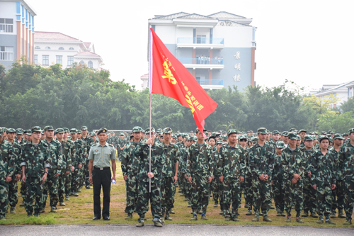 最后,动员大会在激昂雄壮的中国人民解放军进行曲中落下帷幕。南宁分校2015级全体新同学开始了紧张而充实的军训生活。