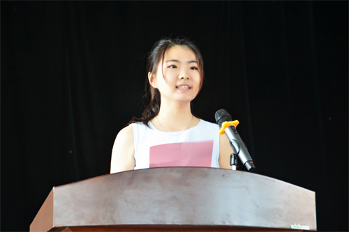 校学生会主席钟广龙同学发言