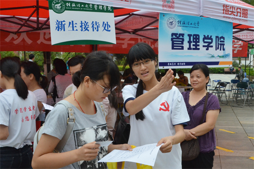 在这一年一度的新生报到日里,全体桂工人正通力合作,用真心和诚意迎接来自五湖四海的2015级新同学,共同开启桂工美好的明天。