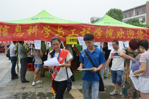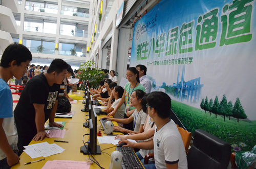 迎新工作在各部门各学院的精心部署下井然有序地开展,新生接站、安排住宿、办理入学手续、开启绿色通道等各个环节在师生热情周到的服务下高效、畅通地运行。有300多名经过培训的志愿者参加了迎新工作,各学院的学生党员更是以饱满的热情迎接来自全国29个省区的5200余名新生报到。