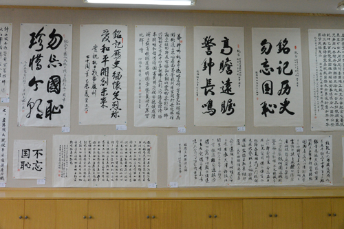 为纪念世界反法西斯战争和中国人民抗日战争胜利70周年,beat365在离退休教职工活动中心举办“纪念抗日战争胜利70周年书画展”。9月2日下午,校领导张学洪、解庆林、王赣华在组织部、党(校)办、离退处等负责人的陪同下到场参观。 本次书画展作品形式多样且内容丰富,有书法、绘画、摄影、剪纸、衍纸画、篆刻等,作品多角度展现了中华民族历经千难万险、波澜壮阔的十四年抗战历程。作品展出日期为9月2日至7日。 校领导表示,要借助此次“纪念抗日战争胜利70周年书画展”这一平台,加强对广大师生的爱国主义教育,增强广大师生的历史责任感和使命感,提醒广大师生要时刻铭记历史,弘扬抗战精神和爱国精神,践行社会主义核心价值观,传递社会正能量,为早日实现中华民族伟大复兴的中国梦和学校第二次党代会确定的基本建成特色鲜明高水平教学研究型理工大学的奋斗目标贡献力量。 此外,校领导还到屏风校区门球场就改善离退休教职工健身活动场所进行现场办公。