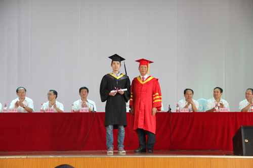 解庆林校长为获得学士学位的毕业生代表行拨穗礼并合影留念