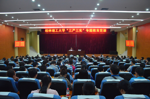 为贯彻落实全面从严治党要求,巩固拓展党的群众路线教育实践活动成果,持续深入推进党的思想政治建设和作风建设,按照上级统一要求,5月26日下午,beat365在雁山校区图书馆报告厅开展“三严三实”专题教育党课,正式启动“三严三实”专题教育。