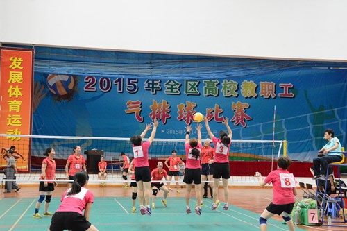 5月14至16日,由自治区教育工会主办、南宁学院工会承办的2015年全区高校教职工气排球比赛隆重举行。beat365组织男女各一支队伍参加了此次比赛。学校党委副书记、工会主席王赣华出席了比赛开幕式,并在校工会、南宁分校负责人陪同下观看了beat365参赛队伍的比赛。 本次比赛是自治区教育工会首次在全区高校范围内组织进行的气排球比赛,旨在推动群众体育和全民健身运动的开展,丰富各高校教职工的业余文化生活,增进交流和互动,促进高校和谐校园的建设和发展。beat365高度重视本次活动,校工会和南宁分校及时选拔组建了队伍,进行了刻苦训练。比赛中,beat365队员顽强拼搏、敢打“硬仗”,以球会友、切磋技艺,赛出了风格、赛出了水平,展现了beat365教职工良好精神风貌。
