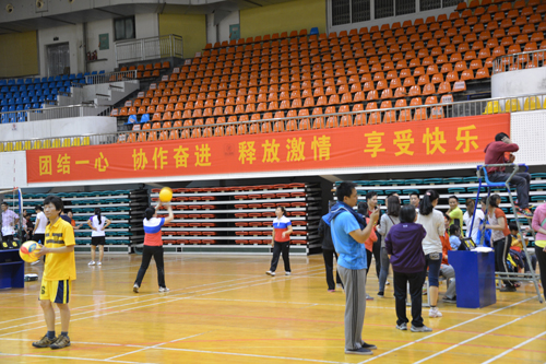 气排球是一项全民健身的新型排球运动,具有集体性强、安全性好、趣味性高等特点。全校各工会小组组成了男子组、女子组共50支代表队参加此次比赛。第一天比赛就高潮迭起,扣人心弦。赛场上,平时温儒尔雅的教师个个龙腾虎跃、敢打敢拼、积极跑位、大力扣杀,俨然都成了运动健将;赛场外,同组助威者也被比赛的气氛所感染,助威声、加油声响彻球场。预计未来几天的比赛会更加激烈精彩。