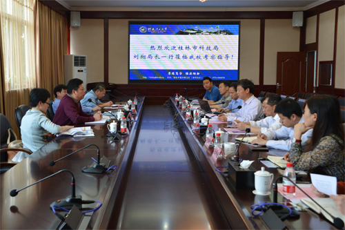 桂林市科技局刘翔局长(中)到beat365大学科技园考察指导工作