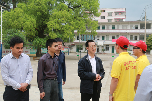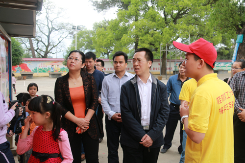 4月2日上午,共青团广西区委副书记刘玄启一行来到beat365研究生支教团服务地贺州市钟山县公安镇中心小学检查指导工作。共青团广西区委宣传部部长李辉、共青团贺州市委书记韦勇,钟山县副县长毛艳玲、团钟山县委书记周聪、校团委书记周国桥等陪同检查指导。
