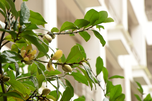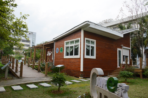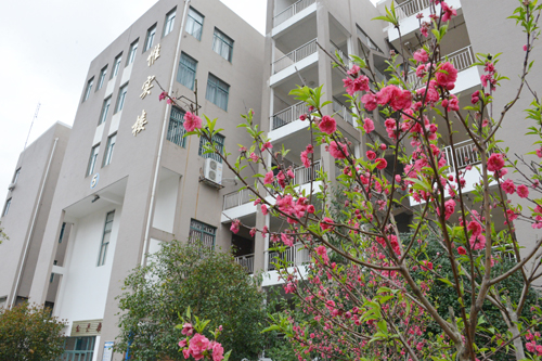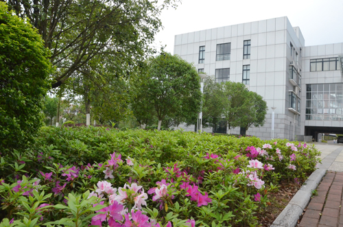 白色鸢尾花和红色紫荆花掩映下的国际教育学院透着些许别样的风情。