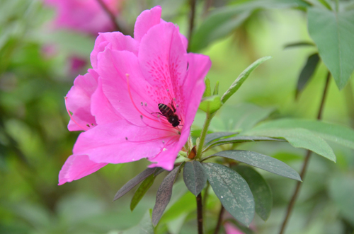 辛勤的小蜜蜂,藏身在杜鹃花蕊中,品味春天的甘甜。