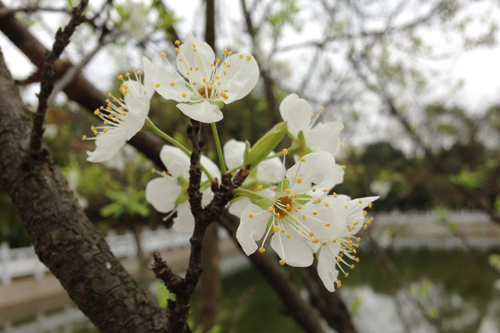 屏风校区高大挺拔的樟树吐露新芽,发出浅红色枝条的桂花树影婆娑,艳丽硕大的茶花竞相开放;雁山校园毛茛的枝头点缀着嫩黄的花朵,雨水滋润过的翠竹摇曳生姿,笼罩在轻纱薄雾中的教学楼、图书馆宛若“犹抱琵琶半遮面”的深闺美人,景观大道的水静淌出“流觞曲水”的名士风流;空港校区,飞梦湖畔,春华碧水,美景处处新……校园的空气里萦绕着丝丝缕缕沁人心脾的花香,蜜蜂在花丛中飞舞,小鸟在枝头婉转低吟,鸭子在水里嬉戏游玩,一切都显得朝气蓬勃、生机盎然。