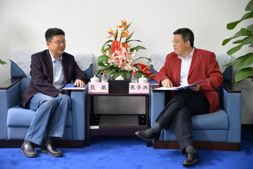 周国清副校长与殷敏副院长商讨联合培养硕士研究生相关事宜并互赠纪念品