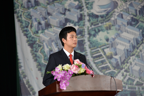 全国大学生暑期社会实践优秀团队负责人、环境科学与工程学院环境科学与工程专业2013级研究生周宸宇同学和中国大学生自强之星标兵、旅游学院旅游管理2011-4班甘书杰同学分别代表先进集体、先进个人发言,他们对学校、师长、同学给予的热情帮助表示衷心感谢,并分享了自己的学习经验和成长经历,表达了今后勤奋学习、积极实践、回馈母校、回报社会的信心和决心。