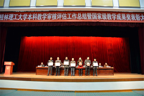 1月25日上午,学校在屏风校区体育馆三楼召开本科教学审核评估工作总结暨国家级教学成果奖表彰大会。在家校领导张学洪、解庆林、王赣华、肖岳峰、陈学军、梁福沛、王敦球、曾繁荣、张鹏,校长助理王文及学校全体教师参加会议。大会由学校党委书记张学洪主持。 会上,学校评建工作领导小组副组长、评建办主任梁福沛副校长宣读了国家级教学成果奖表彰决定、本科教学审核评估先进集体和先进个人决定。与会领导为受表彰单位、个人颁发了荣誉证书。国家级教学成果奖获奖团队代表、环境科学与工程学院院长曾鸿鹄,本科教学审核评估工作先进集体获奖代表、地球科学学院副院长缪秉魁;本科教学审核评估工作先进个人代表、旅游学院黄艳玲教授先后作了发言。 学校校长、审核评估工作领导小组组长解庆林对审核评估工作进行了简要回顾。他从评建工作主要做法和成效、迎评促建的主要经验、存在的主要问题、下一步的整改方向四个方面,对审核评估工作进行了客观、全面的总结,并就下一步做好审核评估整改工作进行了部署。解校长强调,为扎实做好审核评估整改工作,切实提高本科教学水平,学校将重点围绕以下几个方面开展工作:一是强化教学中心地位,切实提高教育教学水平;二是加强师资队伍建设,确保增量提质;三是加强特色凝练,进一步凸显学校优势特色;四是加强教学质量监控,完善体系保障;五是创新管理机制,激发学校发展活力;六是加强教学改革课题的规划,力争取得教育教学改革理论和实践成果双丰收。此次审核评估凝聚了人心,锻炼了队伍,加快了学校建设步伐,促进了学校建设发展,同时发现了问题,找到了不足,明确了任务,为学校未来发展指明了方向。解校长希望全体教职员工要牢牢把握高等教育内涵发展、深化高等教育综合改革的历史机遇,深入贯彻落实学校第二次党代会精神实质,树立强烈的危机意识和第二次创业的思想,团结一心,乘势而上,以更加勤勉的态度、更加振奋的精神、更加扎实的作风,去谱写特色鲜明的高水平教学研究型理工大学的新篇章。 最后,张学洪书记作总结讲话。他代表学校党委、行政对在评建工作以及国家级教学成果奖申报过程中,付出辛勤努力、默默奉献的全体师生员工表示衷心感谢!他高度评价了广大师生高度的责任感和使命感,在学校发展面临关键时刻体现出了强大的凝聚力和战斗力,很好地展现了“桂工精神”,真正做到了“全校一盘棋、师生一条心、上下一股劲”。张书记要求,各单位、各部门要认真领会本次大会报告精神,牢固树立教学中心地位,积极投身教育教学改革,扎实开展好审核评估整改工作,推动学校教学水平再上新台阶。张书记强调,下一步,学校将制定详细的整改方案,希望各单位、各部门领导及广大教职工对此要高度重视,要按照学校总体部署,围绕教学工作这个中心,认真对照检查本单位、本部门存在的问题与不足,切实把整改措施落到实处,为早日把beat365建成特色鲜明的高水平教学研究型理工大学而努力奋斗!