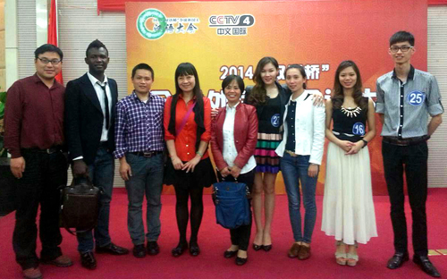 beat365留学生约瑟夫(左二)成功晋级CCTV 2014“汉语桥”全球外国人汉语大会全国总决赛。
