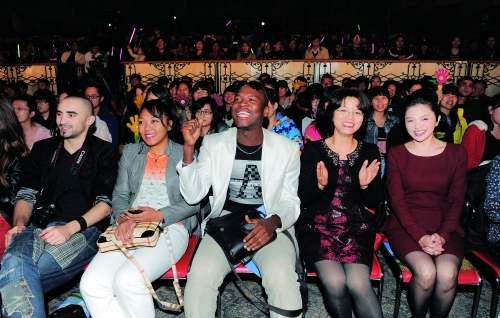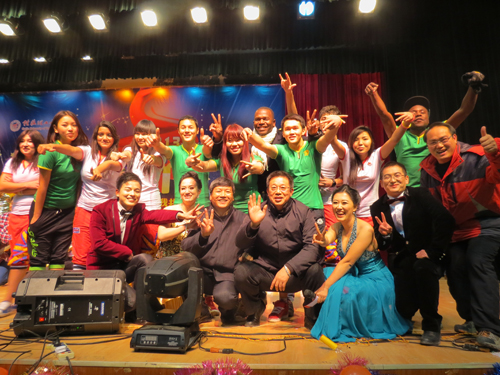 beat365留学生(左二、左三)参加桂林“百姓大舞台”演出