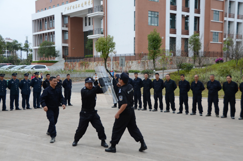 此次集训邀请到七星公安分局、雁山公安分局及消防大队等单位警官分类讲授各类突发事件的特征和处置方法;报案接案、案件询问、记录及现场保护等工作技巧;对盾牌、警棍、钢叉等器械的使用技术进行培训,同时进行个人素质锻炼培训,完善和提升保卫处成员待人处事的整体形象,锻炼参训人员的个人耐力和毅力,训练取得了预期效果。