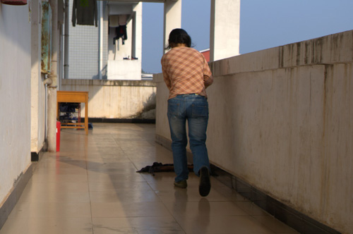每天没课的时候,都能看到她在走廊上劳作,她们的辛勤使我们收获了洁净。一个微笑,一声谢谢就能让她们感到温暖。