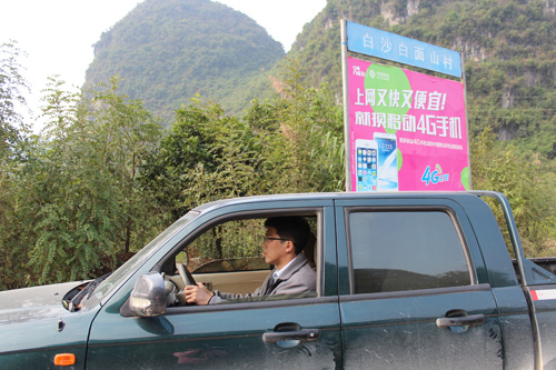 驾车驶过白面山村口。尽管只有8公里左右的路程,由于从遇龙河上的金龙桥到村里的四级公路并未建好,路上花费了半个多小时的车程。