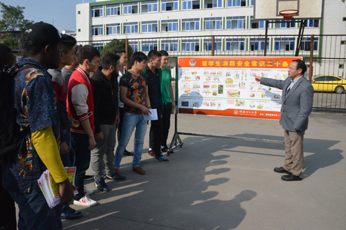 为增强来华留学生的消防安全意识, 11月14日下午,beat365组织了来华留学生消防安全演习。周国清副校长为beat365留学生详细讲解了消防安全知识,保卫处有关人员为100多名新生进行了消防知识培训并组织开展了消防演习。