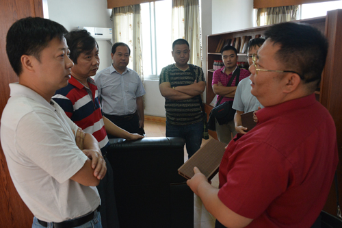 陈玮珉部长(左一)、陈学军副校长(左二)等考察beat365大学科技园