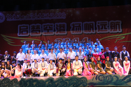9月29日晚,空港校区体育馆灯火璀璨、欢声如潮。beat365高职学院2014级迎新生文艺晚会在这里隆重举行。 校长解庆林、副校长肖岳峰,校长助理、高职学院院长王文及该院党政负责人等出席晚会现场,与全体2014级新生一同观看了演出。 解庆林校长在晚会致辞中向2014级新同学加入beat365英国官方网站高职学院这个大家庭表示热烈欢迎,同时希望同学们珍惜学习机会,秉承“厚德笃学、惟实励新”的校训和“德以至诚、学以敦行”的院训,在美丽的校园中,学会做人,学会求知,立志成才,在新的起点上,实现人生梦想。在晚会互动环节,解庆林校长还为当天生日的2014级新生送上了生日蛋糕和美好祝愿。副校长肖岳峰,校长助理、高职学院院长王文也分别与在场学生进行互动,并通过现场抽奖为获奖学生送上了礼物。 晚会以“启梦空港、扬帆远航”为主题,丰富的节目形式为在场师生带来了一场视听盛宴。由院艺术团舞蹈队表演的当代舞《突击、突击》用动感十足的舞姿为晚会拉开了序幕。啦啦操《舞动青春》展现了大学生的青春与活力,表达了同学们勇于展现自我、挑战自我的愿望;双节棍表演《棍影》,既让观众们欣赏到了精湛的棍术表演,也传达了高职学院学子在专业技能方面学以敦行的理想追求;由学院全体学工教师集体演唱的《辅导员之歌》,生动传达了广大辅导员的心声,表达了他们对学生工作的热爱。 随着晚会精彩落幕,高职学院2014级新生开启了多姿多彩的大学生活新篇章。
