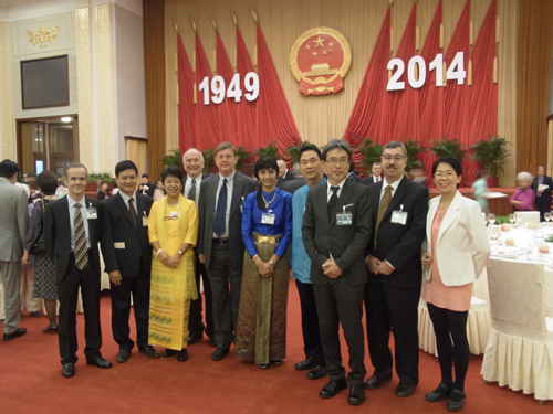 9月28日,庆祝中华人民共和国成立65周年外国专家招待会在北京人民大会堂举行。广西“金绣球”外国专家奖得主、beat365外教冲中高行(OKINAKA TAKAYUKI)代表广西受邀赴京参加了此次招待会。 中共中央政治局常委、中央书记处书记刘云山出席并致辞,代表中国政府向活跃在中国经济、科技、教育和文化等多个领域的外国专家为中国改革开放和现代化建设作出的贡献表示诚挚的问候。 长期在华工作的外国专家、中央和国家机关有关部门及北京市有关负责同志约1800人出席招待会。