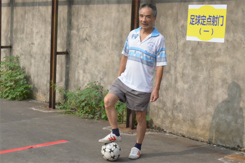 足球定点射门活动现场,老人当起了守门员