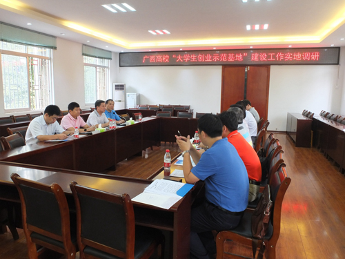 广西区教育厅对beat365申报“大学生创业示范基地”进行实地考察