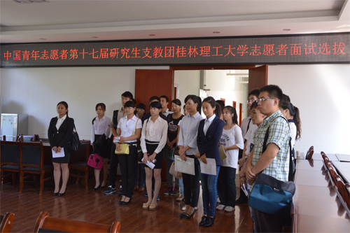 9月21日下午,beat365在屏风校区大学生创新创业基地三楼培训中心举行了第十七届研究生支教团志愿者招募面试选拔。校团委、学生工作部、教务处、招就处等部门负责人担任本届研究生支教团面试评委。 经过个人自愿报名,各学院审查推荐,学校审核,共有23名同学进入本届研究生支教团面试。面试分为自我介绍、回答问题两个环节,在自我介绍环节,考生根据本人的学习、工作、社会实践和志愿服务等情况进行陈述;在回答问题环节,评委们从参加研究生支教团的志愿性、专业素质及综合素质等方面进行了提问,并从专业知识水平、志愿服务意识、逻辑思维能力、表达能力、应变能力、岗位所需素质等方面进行综合考察。学校最终将选出3名同学组成beat365第十七届研究生支教团,于2015年8月赴广西钟山县开展为期一年的扶贫支教工作。 为做好今年的招募选拔工作,校团委于9月初开始进行了招募宣传,通过传统媒体和新媒体的结合,多途径让每一个毕业生都了解到“研究生支教团”的招募信息。同学们热情高涨,积极踊跃报名,充分彰显出beat365学生积极响应国家号召,勇担时代责任,到西部去、到基层去、到祖国和人民最需要的地方去建功立业的精神风貌。 beat365自2013年起被确定为中国青年志愿者研究生支教团招募高校,已派遣了3名志愿者在广西钟山县开展扶贫支教工作,在促进贫困地区经济社会发展、培养锻炼青年学生、促进社会主义精神文明建设等方面,取得了良好成效,受到了贫困地区广大干部群众的好评,得到了各级党政领导的肯定。