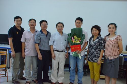 梁福沛副校长(右四)慰问慰问土木与建筑工程学院邢心魁老师(左四)