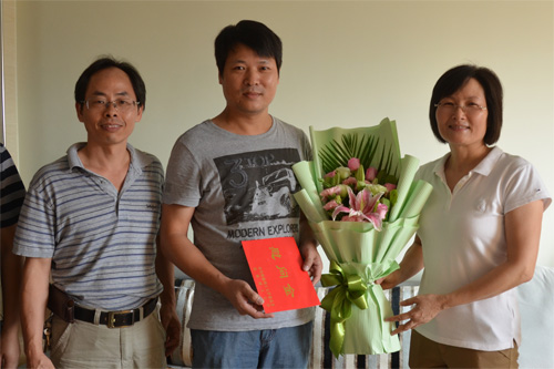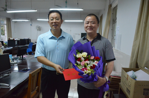 解庆林校长(右)慰问地球科学学院付伟老师