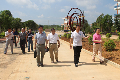 暑假期间,张学洪书记(右二)、肖岳峰副校长(右一)到空港校区实地察看二期工程建设
