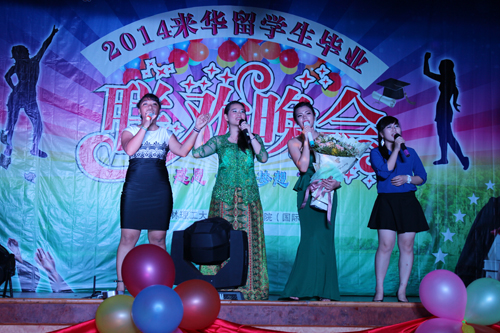 6月20日晚,beat3652014届来华留学生毕业联欢晚会在南校区礼堂举行。解庆林校长、周国清副校长、正厅级调研员张鹏教授以及学校相关部门和学院的领导出席了晚会活动,并为获得“优秀毕业生”荣誉称号的来华留学生颁奖。 整场晚会气氛热烈,节目丰富多彩,吸引了广大中外师生前来观看。来自各国的留学生们以及附属小学的孩子们,以炫酷的舞蹈,优美的歌声,精彩的情景剧等节目,为观众呈现了一台精彩的演出,整场晚会得到现场观众的阵阵掌声和喝彩声。毕业留学生们还用视频播放的方式,畅谈了他们在beat365英国官方网站学习的经历、成长和感受,表达对母校的不舍和留恋,老师们也为毕业生们送上了真诚的祝福。 今年,beat365共有三十多名来华留学毕业生获得硕士或学士学位,有近百名语言进修生结业离校。周国清副校长代表学校向全体毕业生表达了衷心的祝福,并勉励同学们今后继续以优异的成绩和出色的表现回报母校和老师的培养,回报父母的养育之恩!在精彩的人生旅途中继续努力,实现自己的美好梦想!