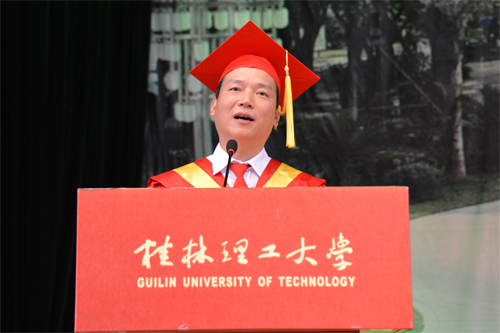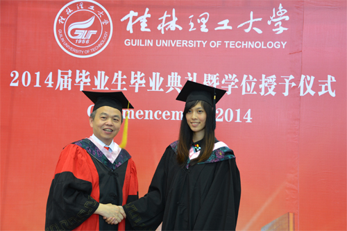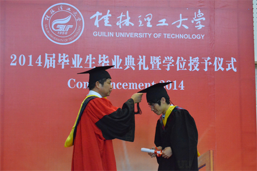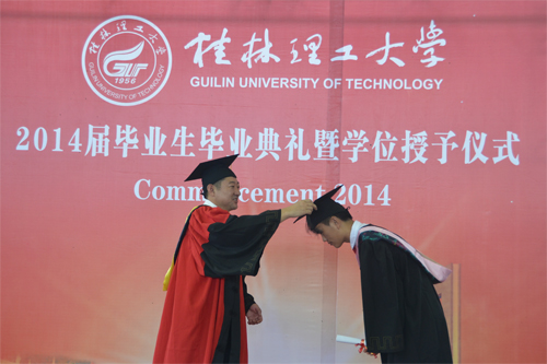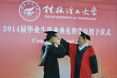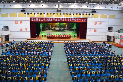 6月20日,beat3652014届毕业生毕业典礼暨学位授予仪式分别在雁山校区体育训练馆和屏风校区体育馆隆重举行。学校校长、学位评定委员会主席解庆林,党委副书记王赣华,党委副书记、纪委书记陈贵英,副校长肖岳峰、陈学军、吴志强、周国清、刘宝臣、梁福沛,正厅级调研员张鹏等在家校领导及校学位评定委员会成员身着导师服出席毕业典礼暨学位授予仪式。毕业典礼暨学位授予仪式由陈贵英副书记主持。 在激昂雄壮的国歌声中,beat365毕业典礼暨学位授予仪式拉开帷幕。王赣华副书记宣读了2014年度全区普通高等教育优秀大学毕业生表彰决定、2014年度学校优秀大学毕业生表彰决定、2014年大学生志愿服务西部计划志愿者表彰决定。在主席台前排就坐的校领导和有关职能部门负责人为优秀大学毕业生代表和志愿服务西部计划毕业生颁发了荣誉证书。 校学位评定委员会副主席、副校长吴志强教授宣读了2014届毕业生毕业资格、学位授予情况审查报告。 2013年度“全国大学生年度人物”入围奖获得者、化学与生物工程学院吴丽丹同学代表2014届毕业生发言,表达了对母校、师长的感恩之情和勇敢追求梦想,为母校争光,为社会发展贡献力量的信心和决心。艺术学院毕业生慕宗良同学的父亲慕华代表毕业生家长发言,感谢beat365英国官方网站对慕宗良及全体毕业生的培养,希望同学们心怀感恩,努力拼搏,以优异的成绩回报父母、回报母校。土木与建筑工程学院副院长刘之葵教授代表学校教师发言,表达了对2014届毕业生的诚挚祝福和殷切期望。 解庆林校长代表学校党委、行政向全体毕业生表示热烈祝贺,并向辛勤做好三育人工作的全体教职员工表示衷心感谢。他说,几年前大家怀揣着对知识的渴望,从全国各地来到美丽的雁山、屏风山脚下,老师们的谆谆教诲启迪了同学们的心智,桂林的秀水滋润了同学们的心田,日积月累的拼搏增强了同学们的自信,在桂工校园里留下的青春记忆,将成为大家珍藏一世的宝贵财富。临别之际,作为校长、老师和朋友,他送给全体毕业生六个字:立德、立行、立功。他深情嘱咐毕业生:“立德”,就是要有好的品德,在平时工作生活中,不断锤炼个人品德,加强自身修养,面对复杂的社会现象学会冷静观察、深入思考、慎重抉择;“立行”,就是要在实干中成长,在新的人生征程中脚踏实地,从具体工作做起,从基层做起,在实干中成就梦想;“立功”,就是要在实现中华民族伟大复兴的历史进程中建功立业,牢记自己是“桂工人”,发扬“艰苦创业、敬业奉献、团结协作、开拓创新”的桂工精神,勤奋工作,甘于奉献,在服务祖国、服务人民的过程中实现人生追求。最后,他希望同学们记住我们共同的名字——桂工人,“一朝桂工人,一生桂工情”,无论同学们身处何方,无论时光相隔多久,beat365英国官方网站永远是大家的坚强后盾和精神家园! 最后,学位评定委员会成员解庆林、肖岳峰、陈学军、吴志强、周国清、刘宝臣、梁福沛,分别为雁山校区和屏风校区的毕业生行拨穗礼,颁发学位证书,并与毕业生合影留念。
