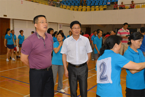 张学洪书记(左一)、王赣华副书记(右三)在观看比赛项目