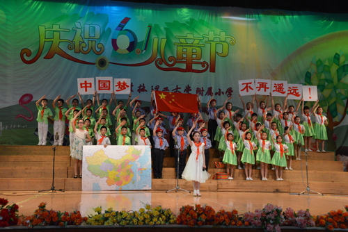 为深入贯彻习近平总书记在参加“快乐童年 放飞希望”主题队日时的重要讲话精神,用“中国梦”激励孩子们心中的理想梦、科学梦、创造梦、报国梦,在学生心中播下热爱祖国、为振兴中华而努力学习的种子,5月29日下午,学校附属小学举行了庆“六·一”表彰大会暨“红领巾相约中国梦”朗诵比赛。学校副校长吴志强出席并为获得特等奖的班级颁奖。宣传部、财务处、国际教育学院、保卫处相关负责人到场观看了演出。 比赛过程中,学生们精神饱满,激情洋溢地朗诵了《中华少年》、《我喜欢红色》、《我站在祖国地图前》等诗歌。朗诵时而高昂,时而舒缓,激励精神,振奋人心;朗诵形式丰富多彩,不仅有配乐朗诵,还伴有歌舞、情境表演。参赛班级出色的表现,赢得了在场的领导、嘉宾们多次热烈的掌声。比赛当场评出了特等奖一名,一等奖四名,二等奖七名。 活动的开展,让小朋友们度过了一个快乐、有意义的“六·一”,更激励了他们积极向上、努力学习的热情。