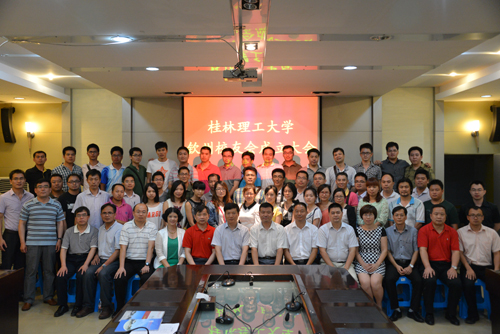 解庆林校长(左四)向防城港校友会颁发水晶证书